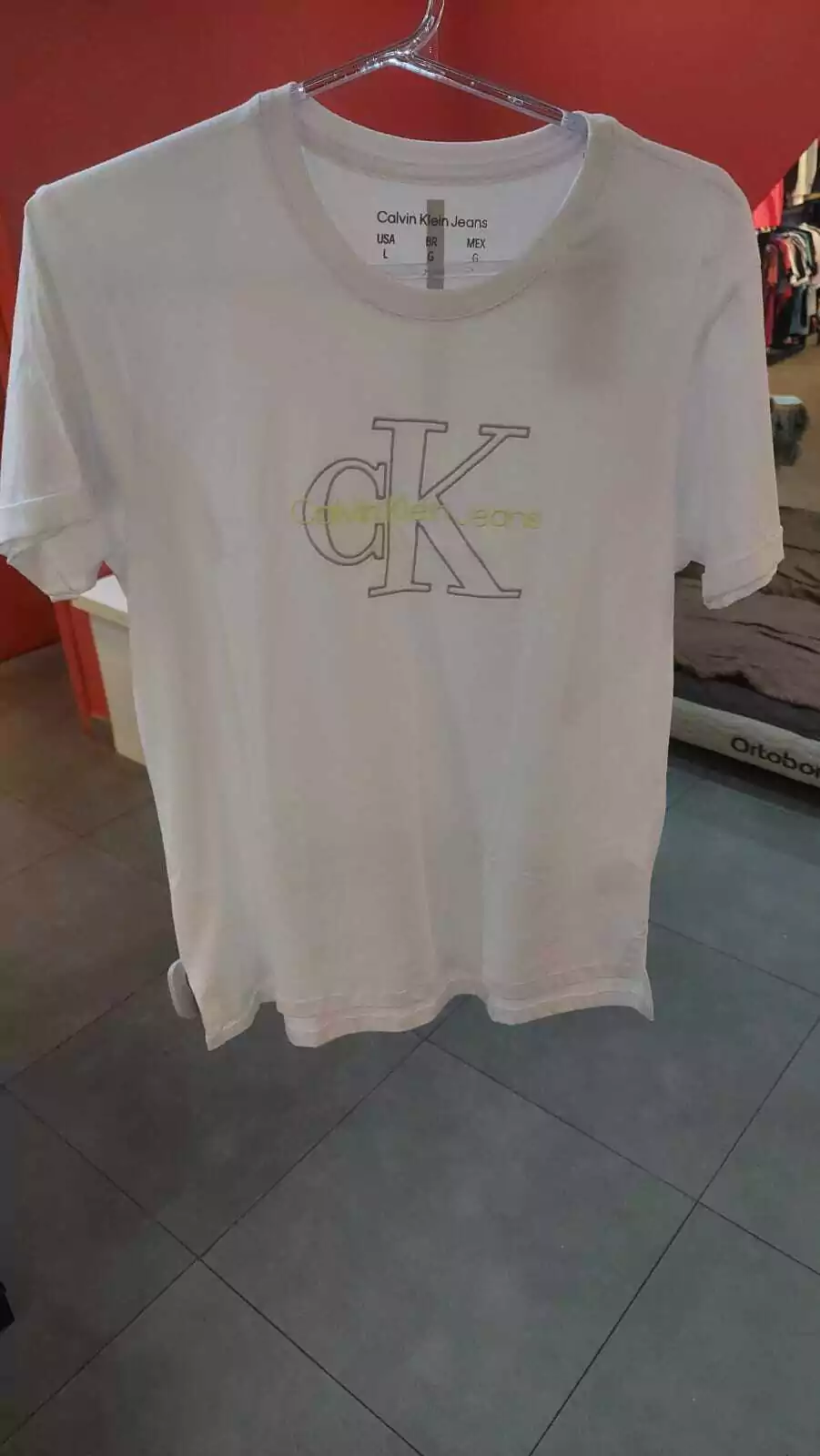 Camiseta Calvin Klein Logo Bordado Espuma Branca - CF3OC01BC626-0900