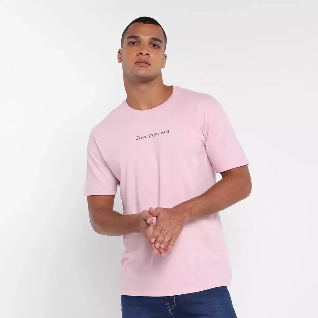 Camiseta Calvin Klein Logo Centralizado Masculina Rosa Claro - CKJM106E-0400